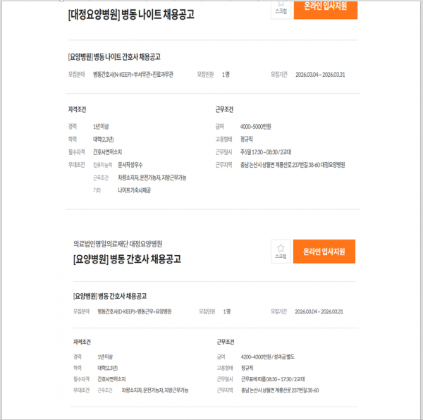 * 병동 간호사 채용